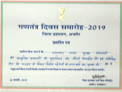 District Appreciation Certificate 2019 - Ajmer